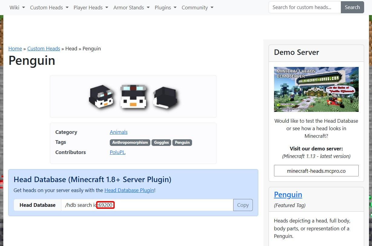 Die ID ist eine Nummer, die den Kopf "beinhaltet". Wenn man zum Beispiel **/deko buy 69200** eingibt, erhält man einen Pinguinkopf.