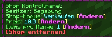 Um einen Spieler-Shop wieder zu löschen, mache einfach einen Rechtsklick auf das Shop-Schild. Dies geht nur wenn du der Shop-Besitzer bist.